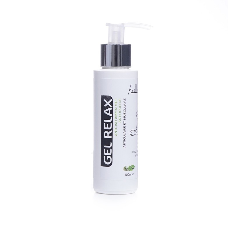 Gel Relax Anti-Inflammatoire 100ml — Apaise et soulage rapidement les douleurs musculaires et articulaires grâce à ses huiles naturelles de menthol, aloe vera, camomille et eucalyptus, pour un effet rafraîchissant et relaxant immédiat.